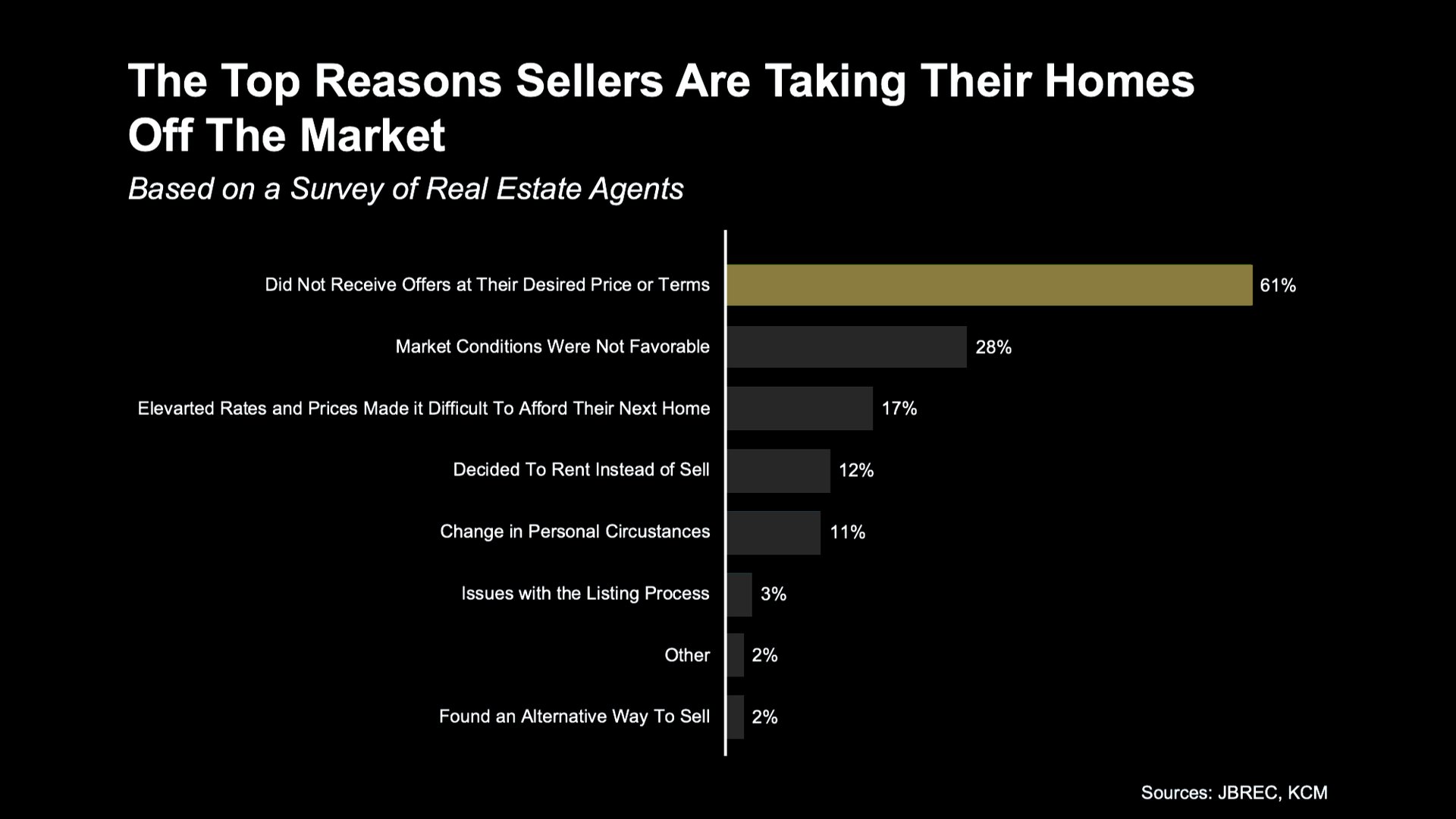 And the top reasons for that? According to the agents, homeowners didn’t get any offers they felt were fair. The survey from JBREC and KCM explains it like this: