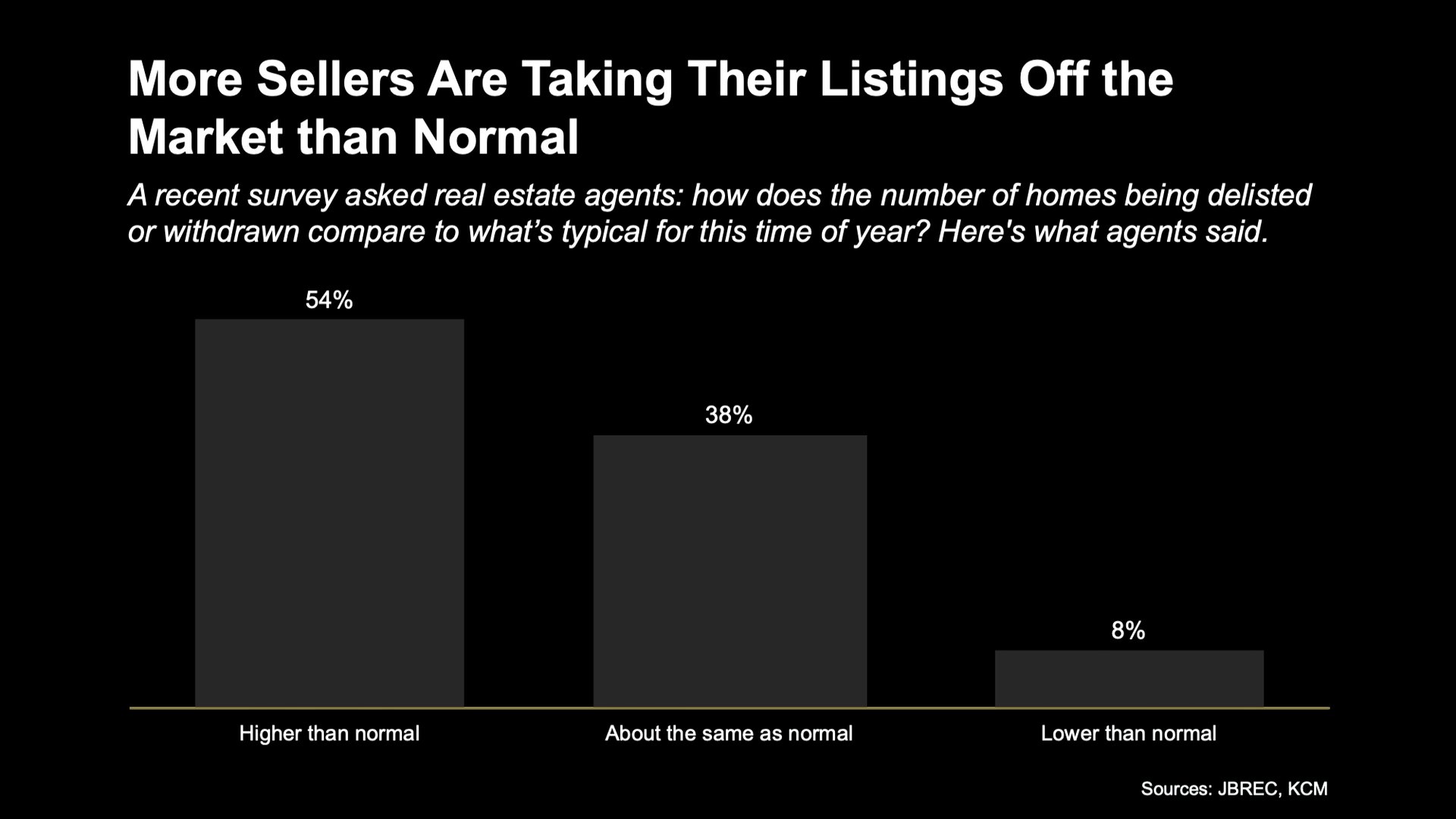 In a recent survey from John Burns Research and Consulting (JBREC) over half of agents (54%) say there are more homes being taken off the market than usual.