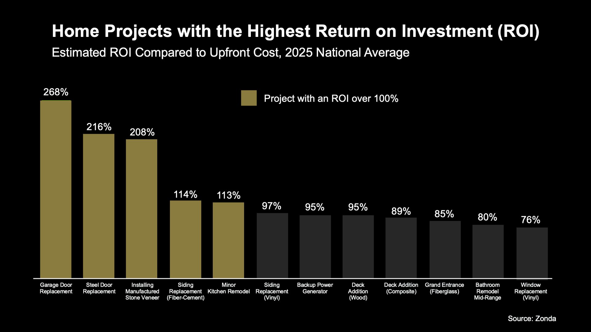 While there's a wide range of projects represented in this data, the cool part is, some of the top winners aren’t big to-do's. They’re just swapping out doors.