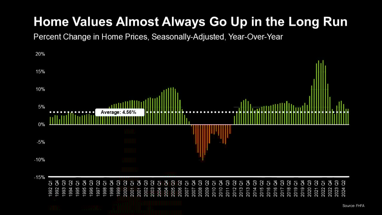 That’s why it’s important not to stress too much about what’s happening this month, or even this year. If you’re in it for the long haul (and most homeowners are) your home is likely to grow in value over time.