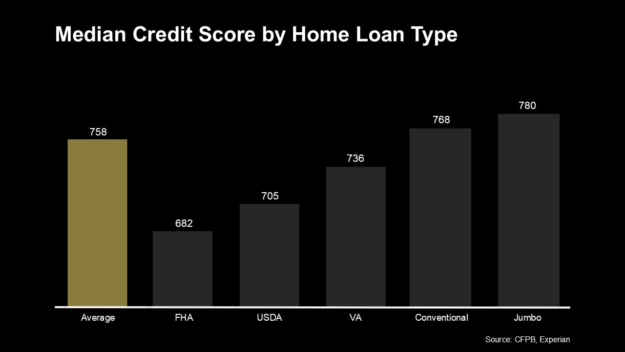 There’s no universal credit score you absolutely have to have when buying a home. And that means there’s more flexibility than most people realize. Check out this graph showing the median credit scores recent buyers had among different home loan types: