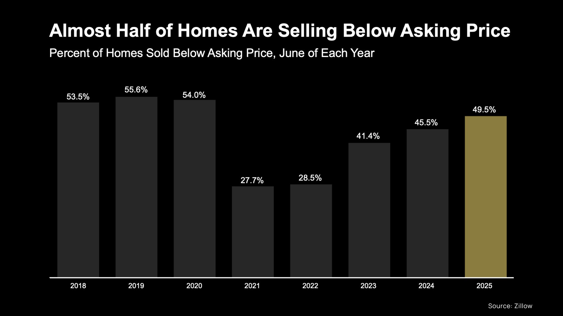 Right now, about 50% of homes on the market are selling for less than their asking price, according to the latest data from Cotality.